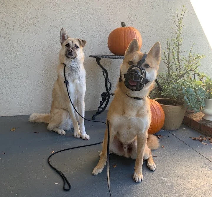 Mana and Bingsu, one of our more challenging fosters who we did end up doing a lot of training with prior to them being able to do walks together.