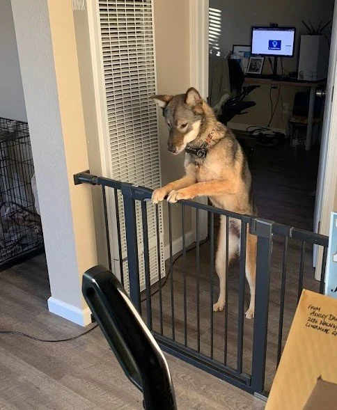The baby gate system is something I continued indefinitely, even on top of a crate and rotate schedule with Mana and the fosters. It allowed me to easily separate dogs in the house and keep fosters away from our cats. One or two fosters were particularly clever and did figure out how to open the baby gate, but for the most part is was an excellent management tool in all of our rentals. If you’re fostering a particularly fearful dog or a flight risk, adding a baby gate in front of exits can be a life saver. I cannot tell you how many dogs slip out of homes and apartments when their handler is simply opening their door to grab mail or talk to a neighbor.